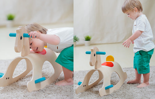自分で木馬を前後に揺らすことで、バランス感覚を養い、腕と足の発達を育みます。また、お子様が成長しておもちゃとして使わなくなった後も、かわいいデザインのパロノミはお部屋のインテリアとして飾るのもおすすめです。