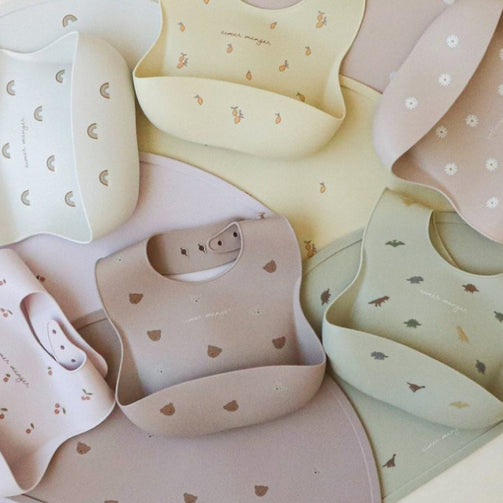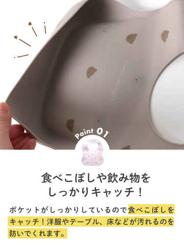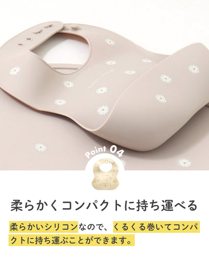 Ampersand (アンパサンド)のスタイ・エプロン「シリコンビブ」は、便利なお食事エプロンです。汚れてもさっと洗って使え、くるくるとコンパクトにできるので、持ち運びにも便利。やさしいカラーでおようふくとのスタイリングも楽しめるデザインです。おそろいのシリコンマットとコーディネートができます!