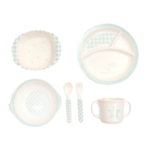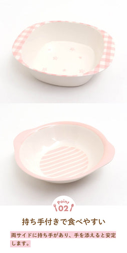Ampersand(アンパサンド)のお食事グッズ「ベビー食器セット」は、チェックやストライプ、星の柄がとても可愛く、男の子でも女の子でも使えるデザインになっております。コップは両手付きでお子様でもこぼしにくく安心して使っていただけます。深皿も手を添えて食べやすいように、両サイドの縁を広めにしています。専用のBOX入りなのでプレゼントや出産祝いにもおすすめです。