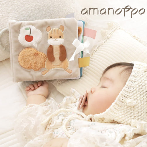 出産祝いとして大人気の布絵本が、amanoppoオリジナルデザインで登場! 布なので、赤ちゃんが思う存分触って遊ぶことができます。 見て、触って、鳴らして…赤ちゃんがよろこぶものを詰め込みました。