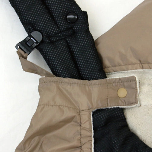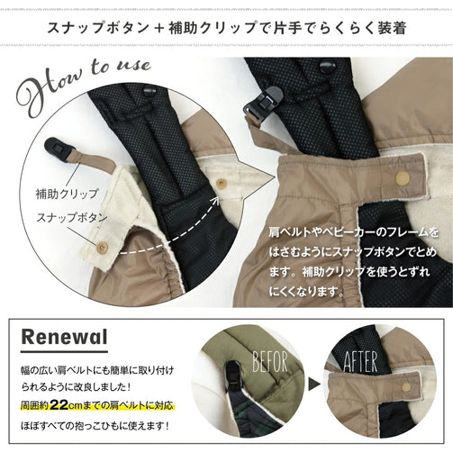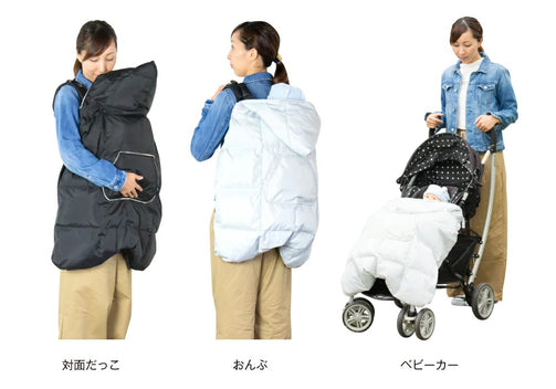 赤ちゃんの足までしっかり包み、動きを妨げないパターンとなっているため快適に過ごすことができます。また、寒い冬でもママの両手を温めるマイクロフリースハンドウォーマー付きなのでママもとっても快適です。