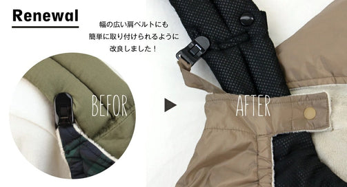 抱っこ紐への固定はスナップボタンで簡単に出来るようになっています。