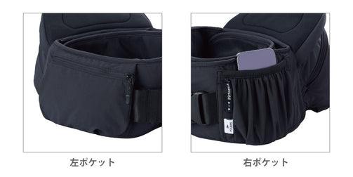 【本体】 生地:ナイロン92%、さすが8% ウエスト部分のメッシュ:ポリエステル100% 座面:ポリエステル82%、さすが18% ベルト:ポリエステル100% 【シングルショルダー】 生地:ナイロン92%、さすが8% メッシュ・ベルト:ポリエステル100% |