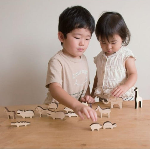 “noe” は「ノアの方舟」からイメージして生まれた、木の動物セットです。 物語を作ってトコトコ歩かせてたり、積み木や乗り物おもちゃと組み合わせたり。 またインテリアとして長く遊べるおもちゃです。 お風呂で動物をプカプカ浮かせたり、お風呂の壁に貼付けたり出来、 バスタイムに親子で木の香りも楽しんでもらえます。