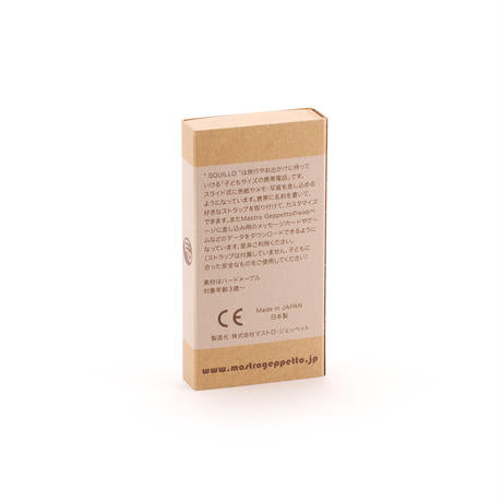 “ SQUILLO ” は旅行やお出かけにも持っていける「子どもサイズの携帯電話」。 スライド式に色紙やメモ・写真を差し込めるようになっています。 名前を書いて、好きなストラップを取り付けて自分色にカスタマイズもできます。