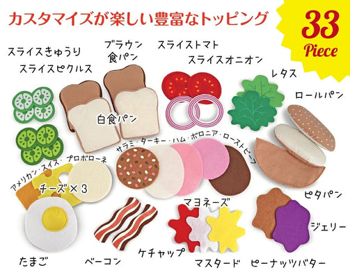 パンと具・トッピングを選んでカスタマイズ!アメリカンスタイルのおままごとセットです。