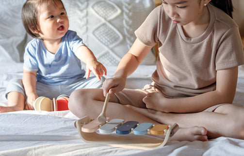 早くから楽器に親しむことで、音感やリズム感を鍛えることができます。木琴はバチを使わないと音を奏でることができないので、手先の発達と目的の場所を叩くという微細運動を促します。お子さまが怪我をしないように、角がなく丸みがあるデザインなので安心して使えます。