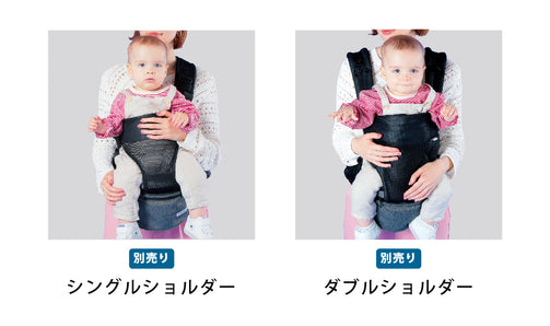 使用月齢 | 腰がすわってから(7ヵ月頃)~36ヵ月(体重約15kg)まで 別売りのダブルショルダーを使うと首がすわってから(4ヵ月頃)お使いいただけます。 |