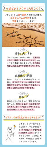 ビタミンDは食品からも摂れますが、私達が太陽を浴びることによって皮膚上でも生成されます。 最近は、日中のほとんどを室内で過ごしたり、美白のために紫外線を気にしてあまり日光に当たらないなど、十分なビタミンDが作れていません。特に妊娠中から紫外線を避け続けたため、赤ちゃんの体でもビタミンDをつくる力が低下する傾向が増えているという調査結果も。お腹の中にいる赤ちゃんはお母さんからビタミンDをもらうしかないので、お母さん以上にビタミンD不足になります。
