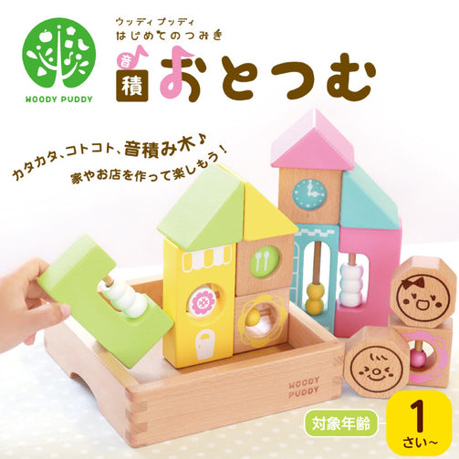 【無料名入れ対象商品】WOODY PUDDY(ウッディプッディ) はじめてのつみき おとつむ G03-1178 J605265 (1歳~)