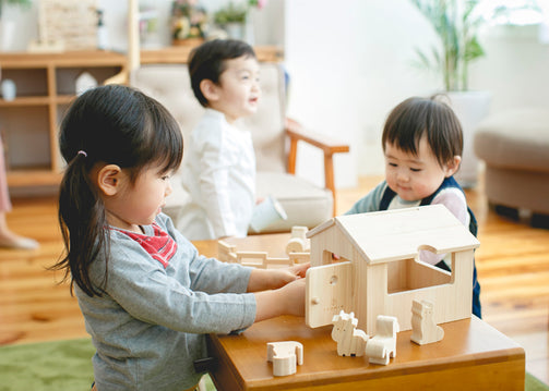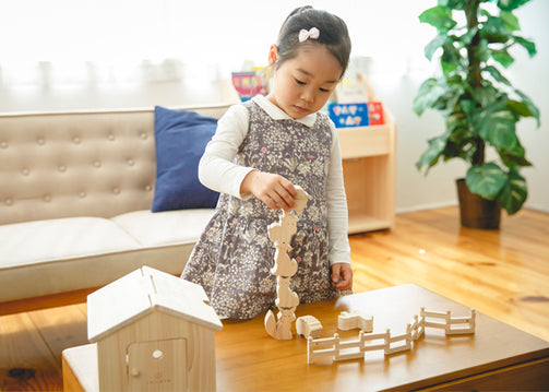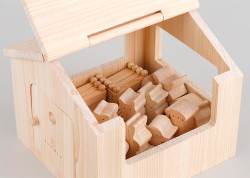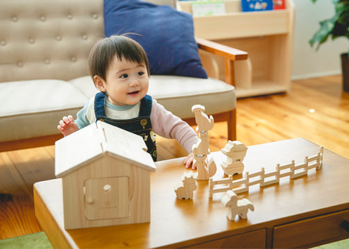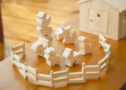 Because they use safe, unpainted Japanese cypress, you can enjoy the various charms of Japanese cypress, such as its refreshing scent, bright, soft color, and deodorizing and antibacterial properties. In addition, unpainted wooden toys are said to keep children interested in the toys for long periods of time and help develop concentration, as they are pleasant to touch and have a warmth similar to that of human skin.
