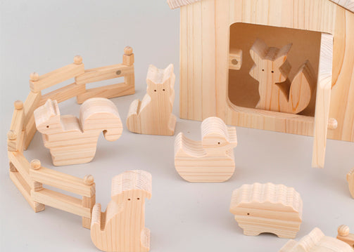 Children can enjoy playing with cute animals (rabbit, fox, cat, dog, horse, cow, squirrel, pig, duck, and sheep) by bringing them inside the house, taking them outside, stacking them up like building blocks, and other games that will stimulate your child's imagination.