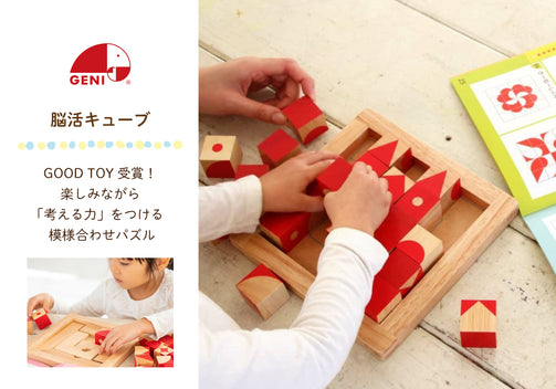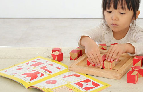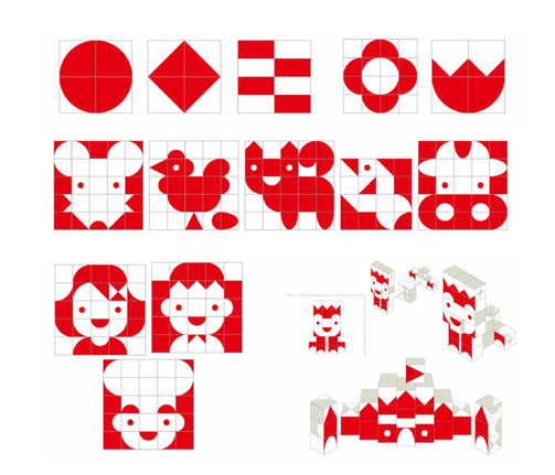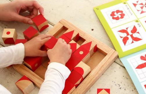 This is a puzzle game where you combine cubes to create patterns, using a textbook that contains 140 two-dimensional examples and 10 three-dimensional examples. As the level increases, the number of cubes used increases, allowing you to freely create patterns other than those shown in the examples. Good Toy Award winning product
