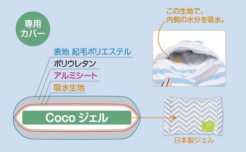 The cover has a new structure, and is more effective at keeping things cold, warm, and preventing condensation. The gel can now be inserted from the front, making it easy to put in and take out. The gel is made in Japan, so you can rest assured. It can be used repeatedly, and even if you cool it in the refrigerator or warm it up in the microwave, it stays soft so it won't hurt your baby's back. The double film structure is also durable enough to withstand 80kg, so you don't have to worry about the gel leaking out.