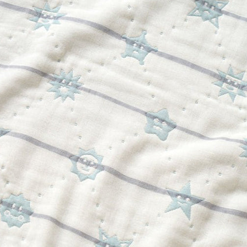 Everyone is a shining star. Every newborn baby has their own personality and is different. We designed each baby with a different star, likening them to a star that is full of personality. In summer, it quickly absorbs sweat and keeps you dry, and in winter, it traps air between the layers to keep you warm. This blanket feels like you are wearing air.