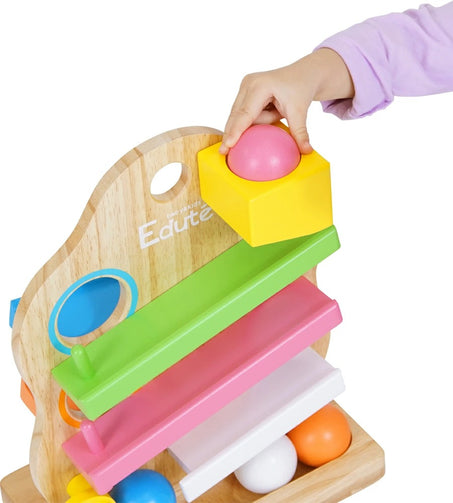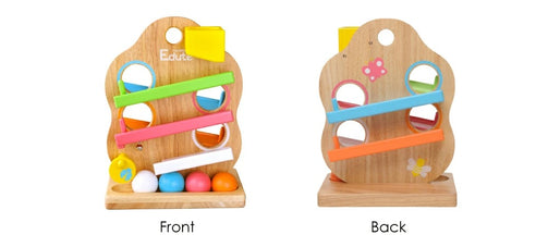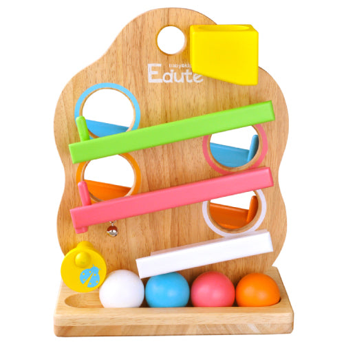 The double-sided slope creates a deep "spiral" motion that will have your child fascinated by the rolling ball! At the end of the slope, a cute bell will ring out.