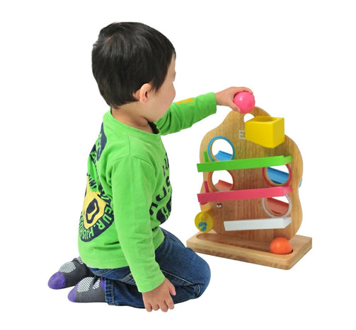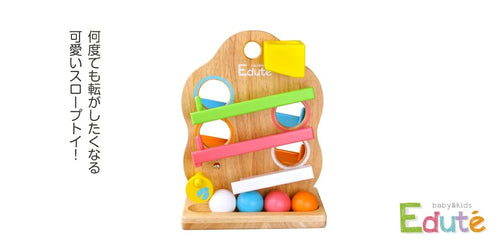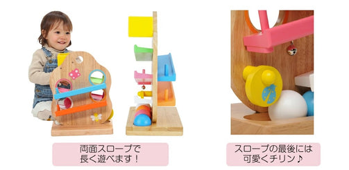 A slope toy with a cute pastel colored tree design motif. It has butterflies, ladybugs, and bees printed on it, so it's fun to play with. The slope has various ingenious features, making it perfect for educational purposes. It also meets Japan's strict safety standards, so it's a toy that you can play with safely and securely.
