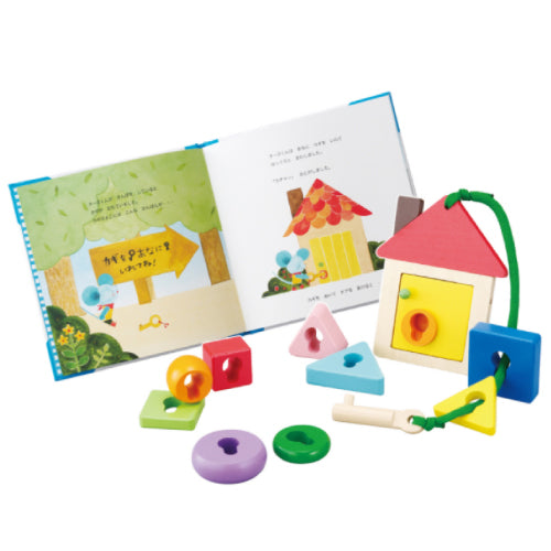 一緒に絵本を読み進めながら、物語の主人公になった気持ちで、カギ開け遊びやひも通しを楽しむことができます。色々考えながらクリアしていくことで自信を持っていろんな事が学んでいけるので赤ちゃんの自主性を育てます。