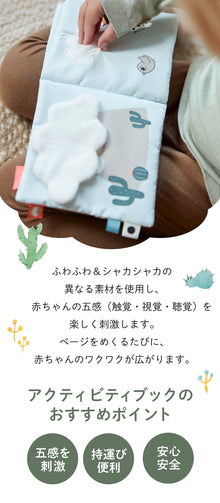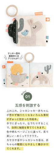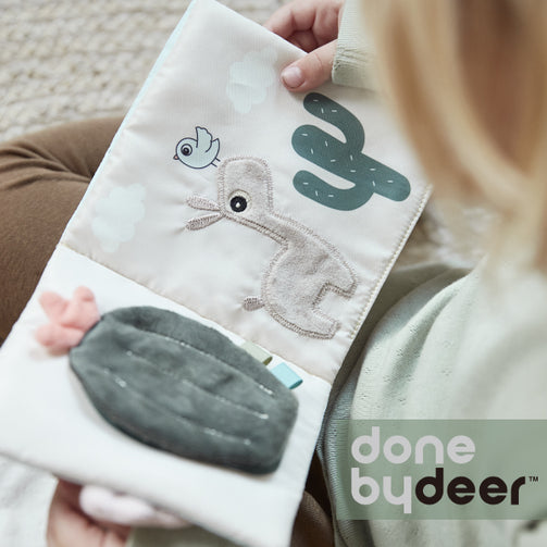 Done by Deerの人気アイテム、布絵本『アクティビティ・ブック』の新作が登場! 新キャラクターのラリーは砂漠で暮らすラマの女の子。ところどころにサボテンが生える砂の世界で、ストーリーはどのように展開していくのでしょう? お話を作ったり、作ってもらいながら、親子の触れ合いが楽しめるトイです。