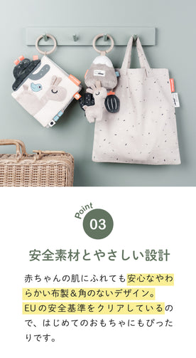 素材 | 生地:ポリエステル 中綿:ポリエステル ミラー:PETG 歯固め:TPE リング:ポリプロピレン |