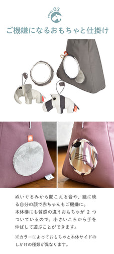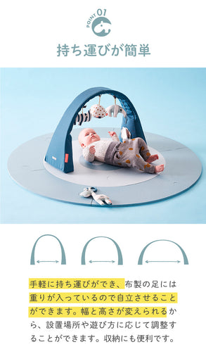 ドイツの国際的なプロダクトデザイン賞であるレッド・ドット・アワード受賞アイテム。持ち運びが簡単だから、ベビーベッドやバウンサーはもちろん、屋外で自然の音を聞きながら遊ぶこともできます。