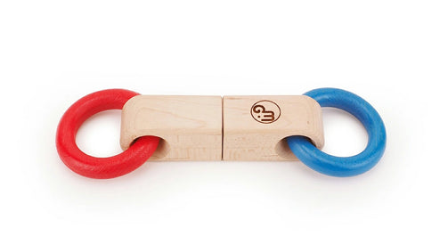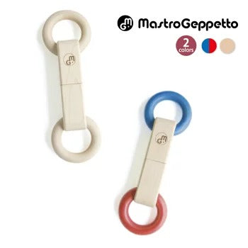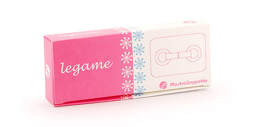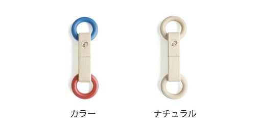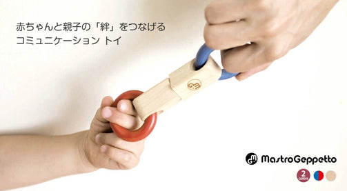 “legame” はイタリア語で「 絆・つながり」 の意。 赤ちゃんの発達と親子をつなげるツールとして開発されました 輪っかの片方を赤ちゃんもう片方をお母さんが持って引っ張り合ってお互いの「絆」を感じてもらえるコミュニケーショントイです。