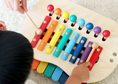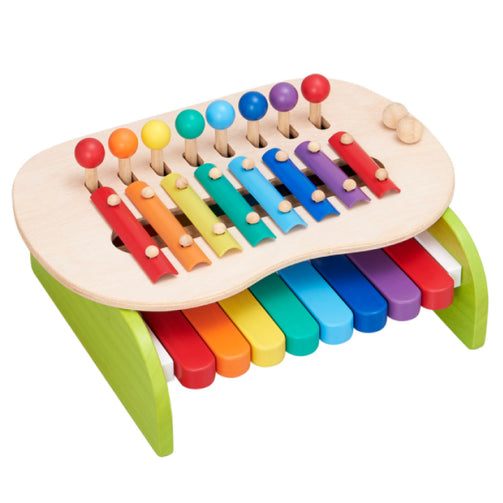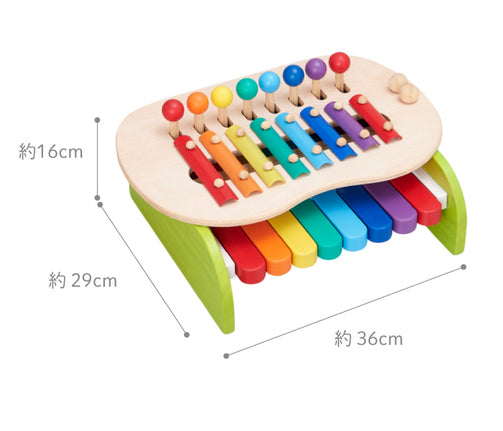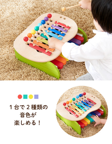 鍵盤とシロフォン、メロディの奏で方が2通り楽しめます。鉄琴と鍵盤でママやパパと二重奏も楽しめます。