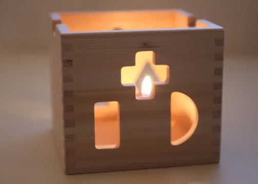 ウォールナットで塗られた部分が取り外せるのでお片付けも簡単。 形をはめるだけでなく、ブロックを積合わせて積み木としても遊ぶことができます。お子様が遊ばなくなった後は、LEDライトを入れて間接照明としても楽しんで頂けます。