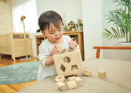 型はめ遊びは形や大きさを認識する能力を養い、手先をよく動かす事で健全な脳の発達に良い影響を与えます。
