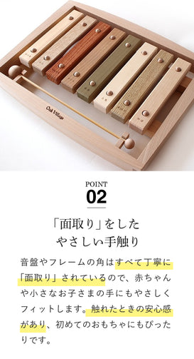 この木琴は、子どもの純粋な感性で自分から遊ぶ楽しみを見つけ出すことができる、成長に合せて遊べる玩具です。