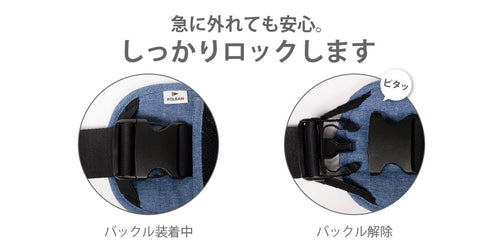 赤ちゃんが大きくなるにつれて、対面抱っこではパパ・ママの視界を妨げるようになってきてしまいます。ポルバンは、座面部分をサイドにずらすことで「腰抱っこ」での抱っこも可能。階段などの足元も視界を妨げることなくご使用頂けます。安全に一緒の目線でコミュニケーションがとれます。