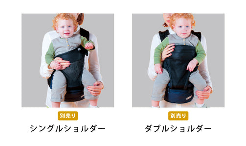 使用月齢 | 腰がすわってから(7ヵ月頃)〜36ヵ月(体重約15kg)まで 別売りのダブルショルダーを使うと首がすわってから(4ヵ月頃)お使いいただけます。 |