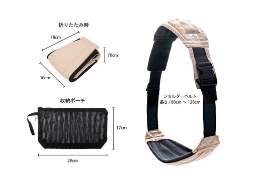 肩への負担を減らすために、ショルダーパーツを幅広く立体的に設計しました。お子さまの体重を分散し肩への負担を軽減します。また、ねじれにくくストレスを感じることなく装着でき、左右どちらの肩でもご利用いただけます。