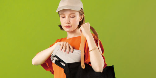 ホックで留めるだけで小さくなる簡単コンパクト設計です。バッグに入れても場所を取らずさらにすぐに取り出せるので、いつでもサッと使えます。