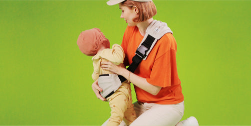だれでも簡単に使えることにこだわりました。使おうと思ったときに斜めがけして赤ちゃんを乗せるだけ。肩がけする部分、お尻を乗せる部分もパーツから連想できるようにデザインされています。他社製品のように生地を伸ばしたり整えたりする手間を省き、手軽に使え、子育てを楽にすることを追求しました。