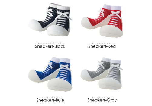 靴下素材で伸びるので履かせやすく脱げずらく、靴下部分が足首にぴったりフィットするので、外出時にいつの間にか紛失する心配もありません。普段使いだけでなく非常時にもサッと履かせることができるので避難靴としても。