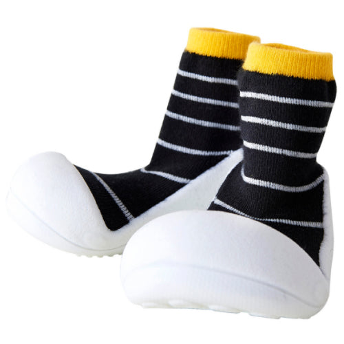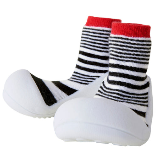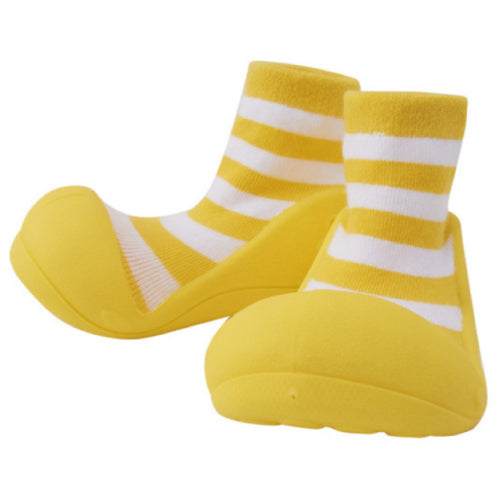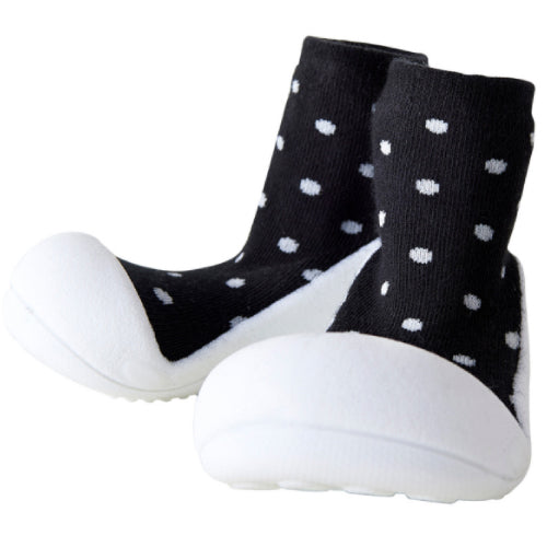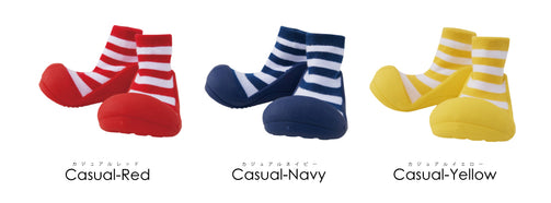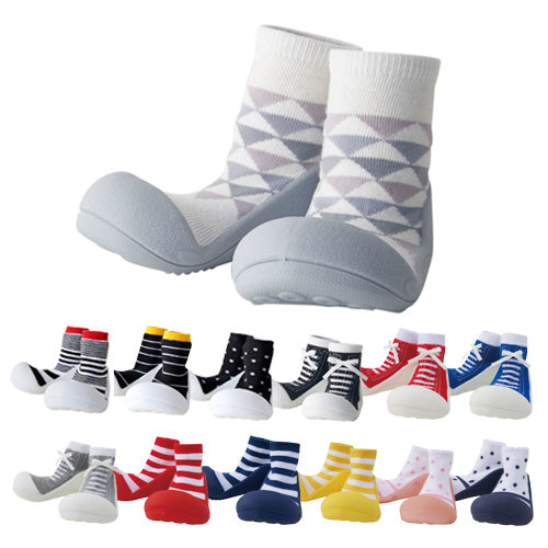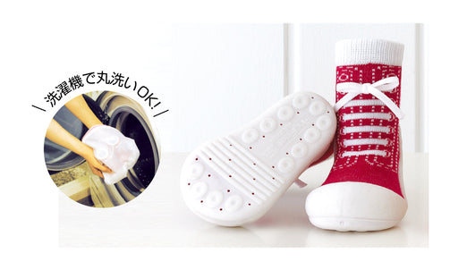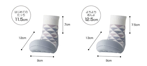 ベビーシューズを履かせると嫌がって脱いでしまう。靴を気にして歩こうとしない。そんな赤ちゃんにぴったりです。主な用途はルームシューズですが底がラバーなので簡易の外履きとしてもご使用頂けます。(底に通気のための穴が空いていますので水気のある場所でのご使用はお控え下さい。)