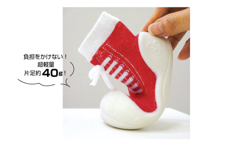 靴底は赤ちゃんのおしゃぶりにも使用されている素材です。縫い目がなく、接着剤も使用していないので、なんでも口にする赤ちゃんにも安心です。また、燃やしても有害な物質は発生しません。とっても柔らかく片足が約40gと超軽量!赤ちゃんに負担をかけず、持ち運びにも軽くて便利です。
