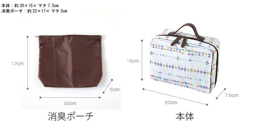 サイズ | 本体:約20×15×マチ7.5cm 消臭ポーチ:約22×17×マチ5cm |