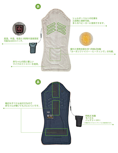 10秒発熱や3段階温度設定、そして遠赤外線効果など優れた機能で、「寒い冬のおでかけでも赤ちゃんを瞬時に温め快適に過ごすこと」ができます。