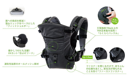 そんな新米ママ・パパにオススメしたいベビーキャリアファーストは新生児時期の抱っこにフォーカスし、はじめての抱っこも簡単に安全に抱っこできるように開発された抱っこひもです。また