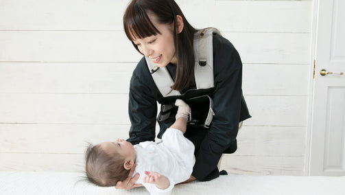 ベビーキャリアファーストは、対面抱っこの状態から赤ちゃんを降ろすために、おんぶに取り組むことができます。